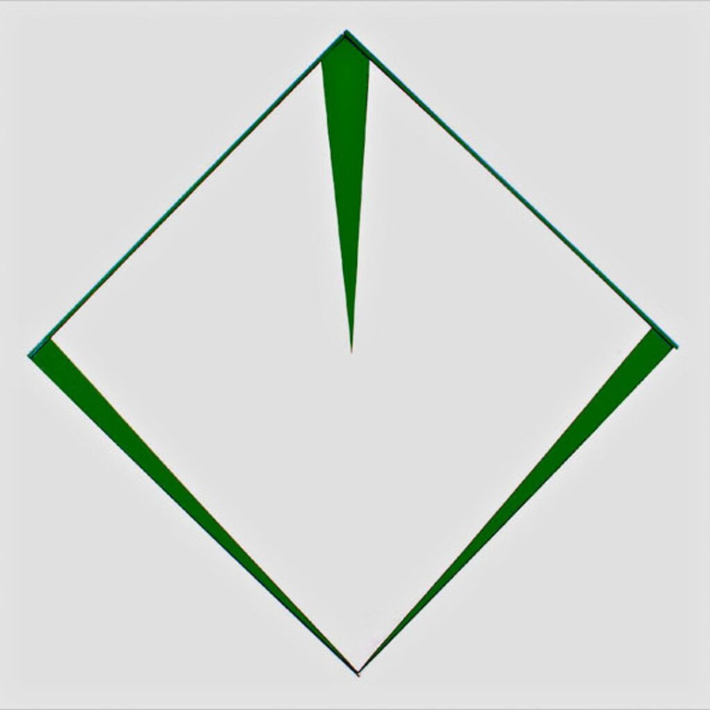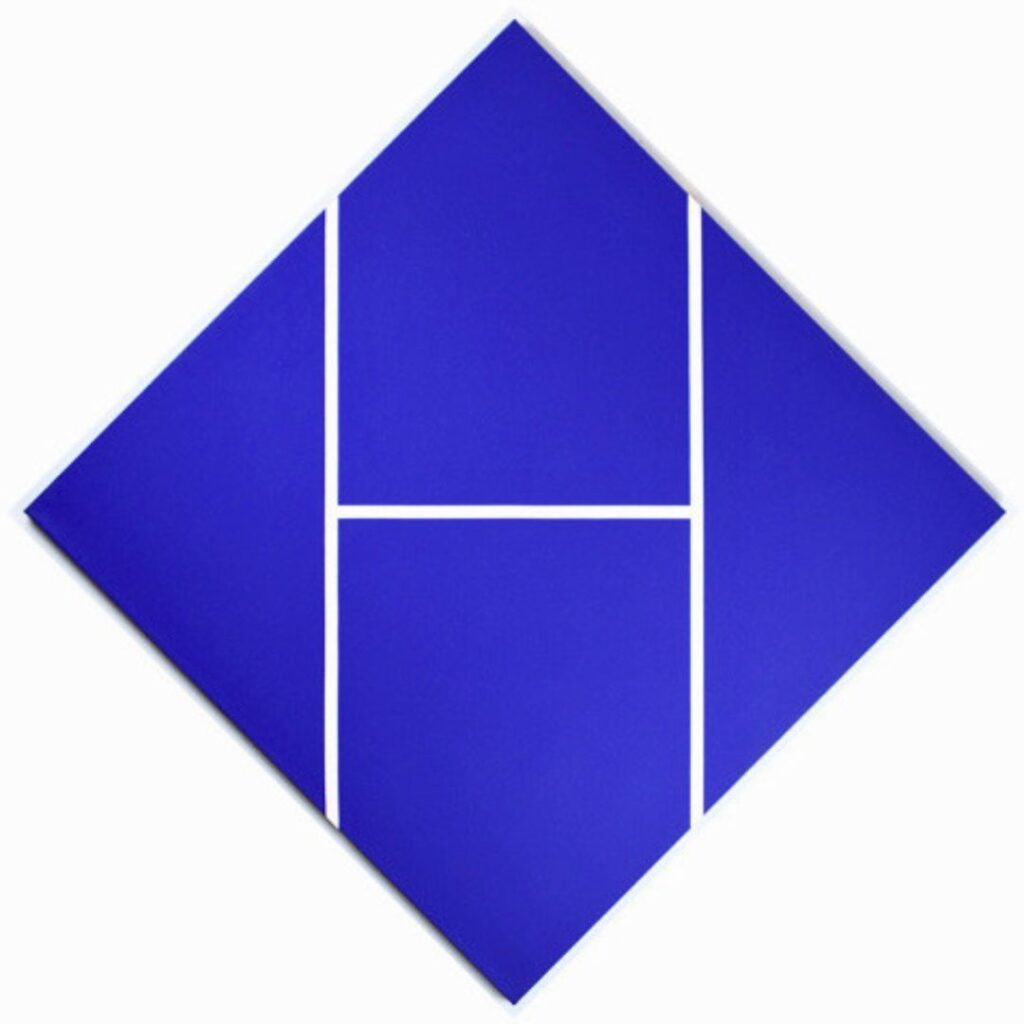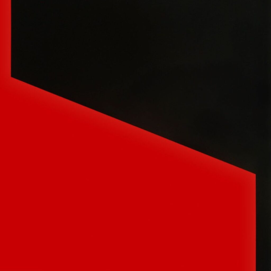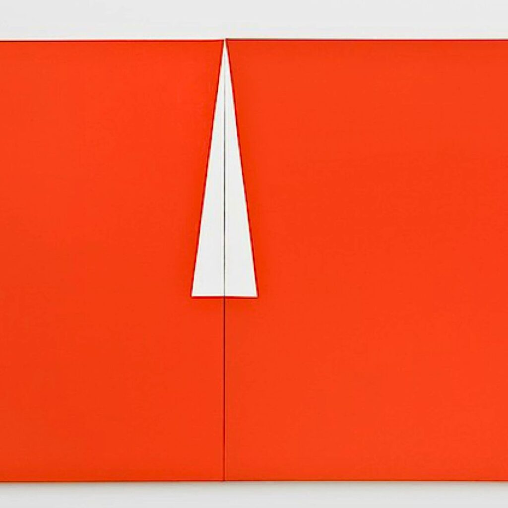 La repetición, finalmente, desempeña un papel fundamental en esta arquitectura del plano. Lejos de constituir un signo de reiteración, la repetición opera como método de investigación. Cada obra reitera un problema —la relación entre dos o más planos, la posición de una diagonal, la proporción entre campos cromáticos— y lo ajusta mediante variaciones mínimas. Esta lógica de iteración no produce una serie en sentido programático, sino un proceso de afinamiento continuo donde la diferencia se inscribe en el interior de una misma operación.