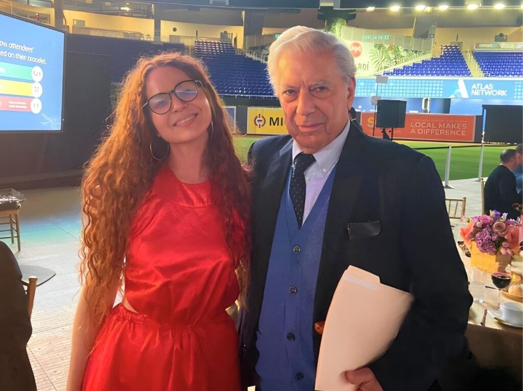 La periodista Carla Colomé Santiago junto a Mario Vargas Llosa.